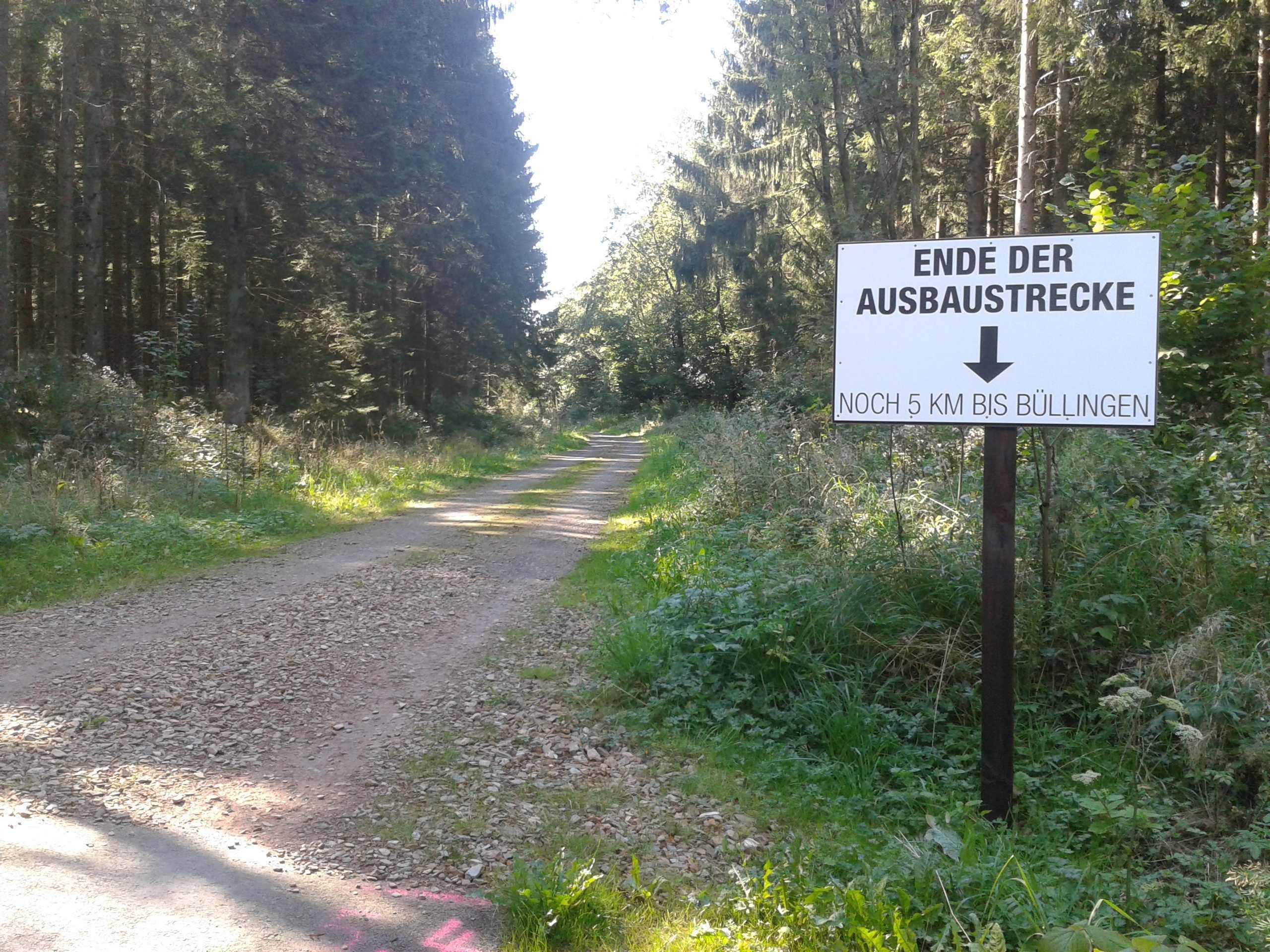 Die Vennquerbahn zeigt sich zuerst bestens ausgebaut (Neue Zählung KM 0,0), doch dann ärgert mich die bereits oben beschriebene Schikane. Gar nicht glatte 10km um Büllingen herum gab es eine zu Teil mit geschredderten Apshaltresten sehr grob geschotterte Strecke. Für Rennrad und besonders meinem Hintern eine Qual. Es kommt mir auch nur ein Radler entgegen. Mit MTB versteht sich. Die tolle Landschaft mit abwechselnd Wiese und Wald, durch den mehr als einmal ein kräftiges „Aua!“ schallt, entschädigen zumindest ein wenig. (Update: seit 2017 ist hier auch durchgehend asphaltiert. Yeah!)