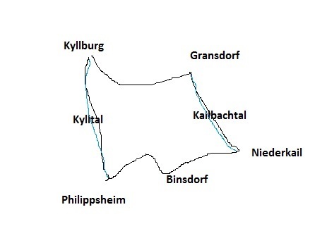 Bis zum Bahnhof Philippsheim sind es von Kyllburg circa 45 km. Es bietet sich an, dem Kylltalweg von dort weitere 20km bis Kyllburg zu folgen (schöne Steigung nach Wilsecker hinauf zum Schluss.) Oder bis Erdorf.