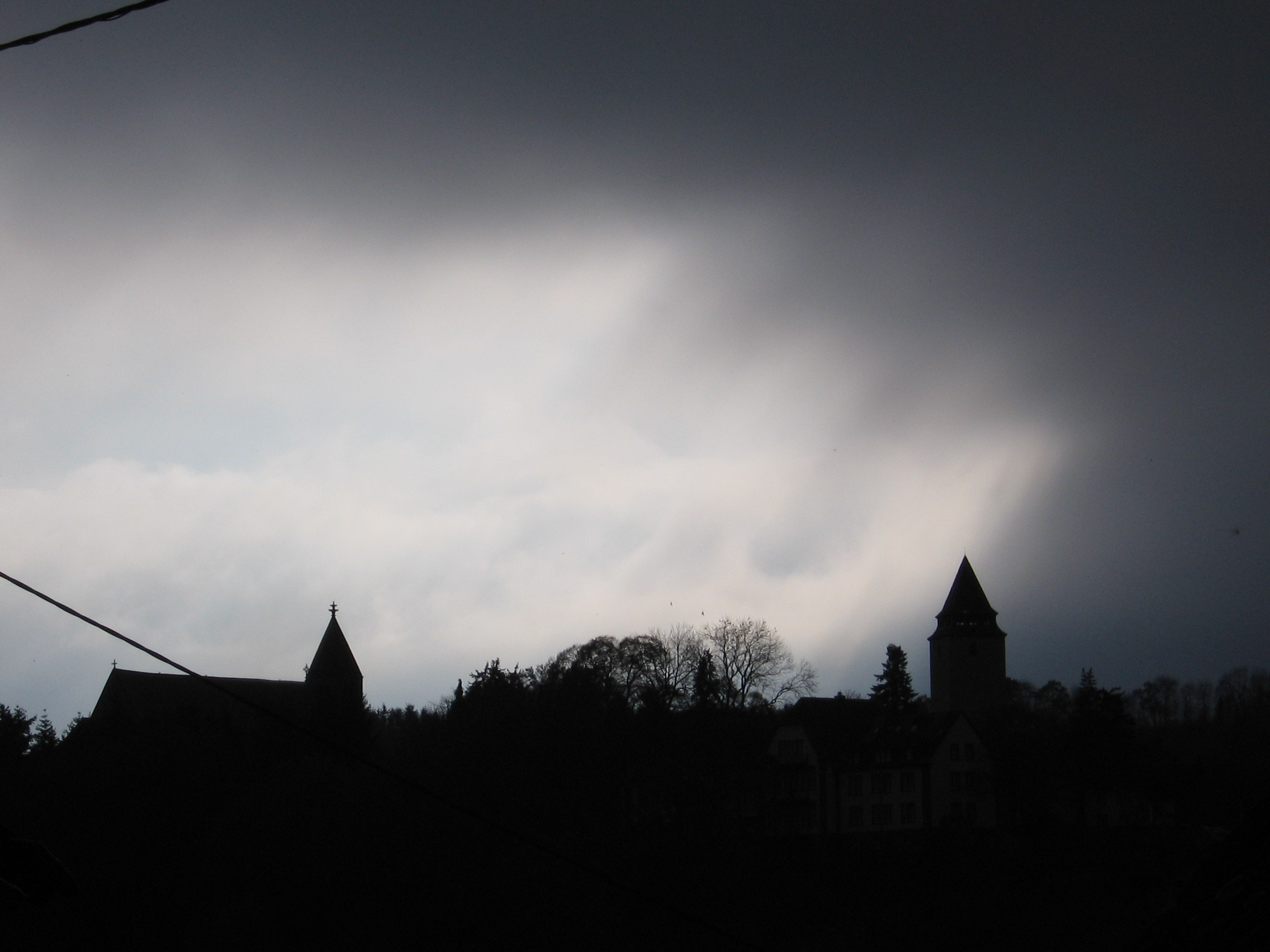 Wolken fast so schwarz wie der Nachthimmel über dem Kyllburger Stiftsberg. Fahles Mondlicht beleuchtet matt den alten Burgturm. Der sanfte Nachtwind läßt die Blätter im Gebüsch leise rauschen. Ein Tier raschelt im Laub. Ein Käuzchen ruft zwei, dreimal. Ansonsten herrscht Stille weit und breit. Nichts los in der Eifel...