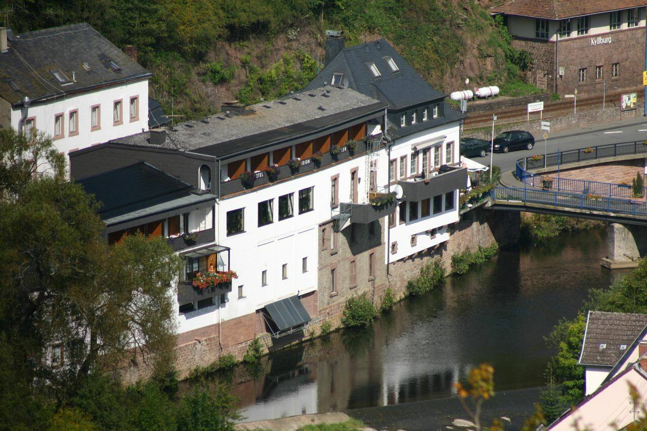 Sie treffen sofort auf das erste Lokal, die Bahnhofgaststätte mit der kleinen Außenterrasse am Bahnsteig. Sie ist Ziel vieler Kyllburgerinnen und Kyllburger zum gemeinsamen Erleben der 1. Bundesliga und gerne auch Formel I live. In intensiven Fachgesprächen erörtert und bewertet man begleitet von erfrischenden und den Unmut kühlenden Getränken kritisch bis wohlwollend fair die Leistungen der Sporttreibenden.